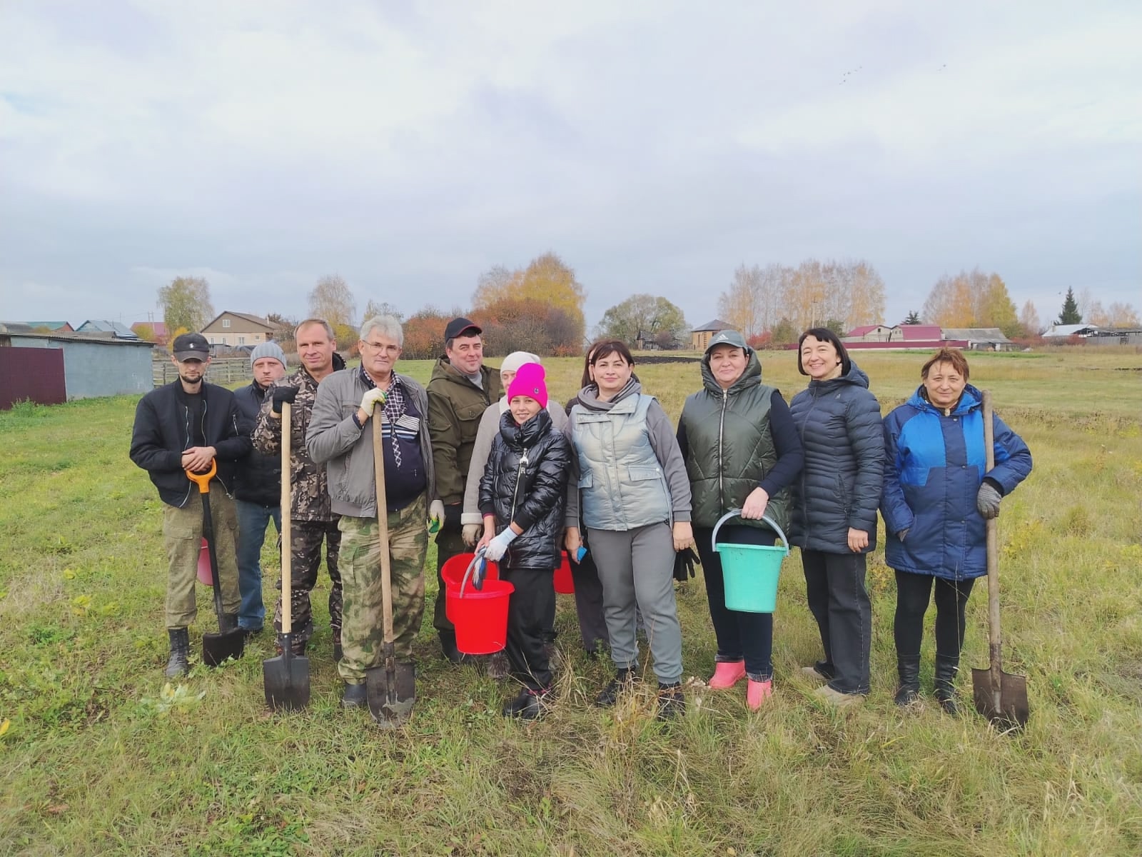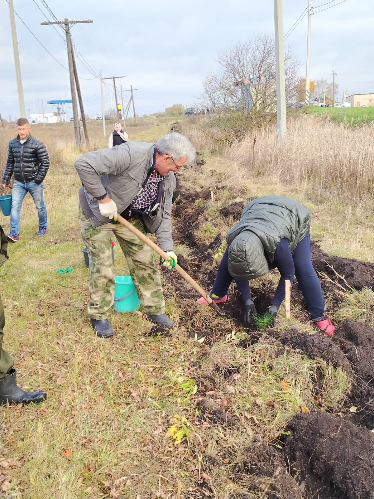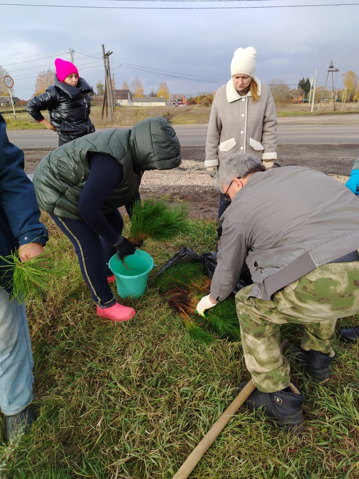 Коллектив суда высадил саженцы сосны по ул. Ленина, р. п. Сараи.